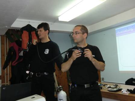 Am Abend hielten wir im lokalen Tauchclub eine Präsentation über DIR & Cavebase Projekte (Cabouy und Gourneyras). Alle waren äußerst interessiert, 2h Stunden gespanntes Lauschen mit ein paar Zwischenfragen, aber auch Skepsis über den Mythos um die horizontale Wasserlage etc. In diesem Club sind nur Sporttaucher, aber alle sind äußerst interessiert.