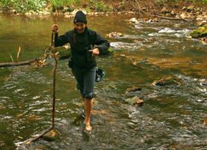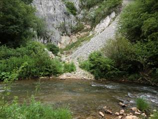 Für den heutigen Tag hatten wir uns einen Plan B überlegt. Ein Team wollte gern noch einmal den Kopf in die Mlave Vrelo reinstecken. Ike und Oli schafften es, den Kopf in die eigentliche Höhle zu strecken und konnten eine gute Beschreibung abgeben. Der Rest der Truppe machte sich auf den Weg 2 weitere Locations zu besichtigen. Bei der ersten Position sind wir sicher 1 – 1,5h durch den Wald gelaufen. Dabei mussten wir den Fluss immer wieder queren. Unser Führer war sich am Schluss selbst nicht ganz sicher, wo diese Stelle sein soll, wo so viel Wasser aus dem Berg kommt. Nun ja, das gehört wohl auch zur Expedition, viel wandern und …. man kommt nicht an.