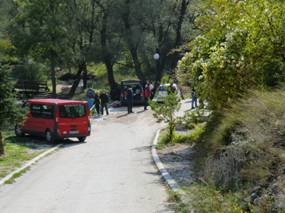 Auf der Weiterfahrt nach Nis standen noch ein Kloster und eine sehr eindrückliche, reichlich mit Tropfsteinen geschmückte Schauhöhle auf dem Programm. Unterwegs in ländlicher Umgebung, auf schmalen Strassen, wir weichen einem LKW aus und fahren uns in aufgeweichter Wiese fest. J => Njema Problema! Alle vorbeikommenden Fahrzeuge halten an und schleppen/schieben uns raus.