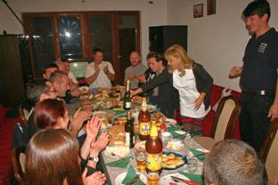 Abends hatte unser Vermieter in der Unterkunft ein kleines Fest organisiert, zu dem auch ein paar Freunde aus dem Tauchclub und Vertreter der Verwaltung eingeladen waren. Es gab Spanferkel und allerlei serbische Spezialitäten. Äußerst lecker. Wir feierten unser Projekt und tauschten unsere Gastgeschenke aus. Der Abend war leider kurz, da am nächsten Tag 1000 bis 1500km Heimreise bevorstanden.