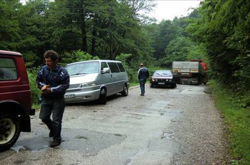 Anreise: Uns standen 1500km bevor, dazu Abfahrt 5:20 in Böblingen, durch Deutschland, Österreich und Ungarn verlief die Reise ganz unspektakulär, so dass wir nach 1126km die Serbische Grenze um 16:35 erreichten. Überraschend zügig verliefen die Zollformalitäten, das Anmelden der Ausrüstung kostete nur 1/2h. Weiter ging erst mal auf der serbischen Autobahn bis hinter Belgrad, dann 20:10 bei Kilometer 1400 Abfahrt von Autobahn. Das letzte Stück der Strecke ging über Serpentinen, durch Regen und dichten Nebel. Endlich