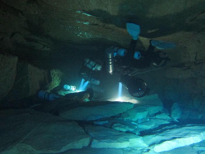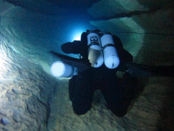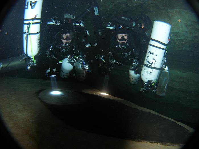 Die nächsten beiden waren Oli und Danny. Ihre primäre Aufgabe war das Einrichten des dritten Depots (jetzt nur noch für Markus und Börni) bei ca. 850 m (drittes T). Beide nahmen neben ihren eigenen Gasen und Scooter noch jeweils ein Tiefengas und Scooter für Börni und Markus mit. Nach einrichten des Depots stand als zweite Aufgabe der Clean-Up in dem von Carsten und Tobi bereits neu verleinten Gang an (beginnend vom 3. T). Sie planten eine Gesamttauchzeit von 6h. In einem Zeitabstand von ca. 45 min zu Tobi und Carsten tauchten die beiden ab.