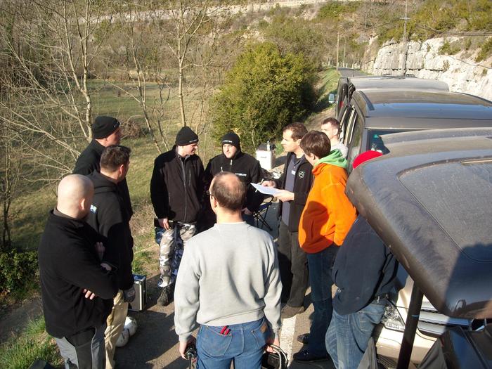 Spät abends angekommen trafen wir auf die übrigen Teilnehmer, Tobi, Carsten, Börni, Markus, Oli, Danny, Marc und Andi, gut gelaunt beim improvisierten Abendbrot. Der entspannte Abend war kurz, da Tobi mit Verweis auf die nächsten Tage die Runde aufhob. Wie Recht er behalten hat.  Die Zahl der Parkplätze an der Ressel ist gerade reduziert worden und so war es wichtig, vor allen anderen dort anzukommen. Das hieß Abfahrt um 7:00 Uhr und war mit mehreren Walky-Talkies ein echter Spaß.